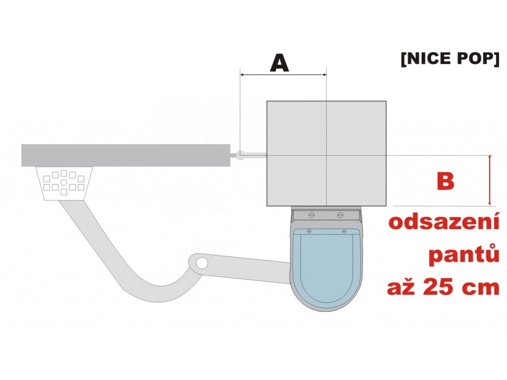 Nice PP7024 pákový pohon křídlové brány s odsazenými panty až 25 cm vč. jednoty POA1